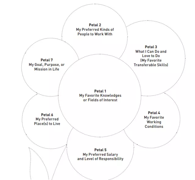 最近还在看“what color is your parachute”,第七章的,“you need to understand more fully who you are”,是一个挺有趣又相当耗时的章节,花了两天,还没有完成第一个花瓣 “my favorite knowledge or fields of interest ”